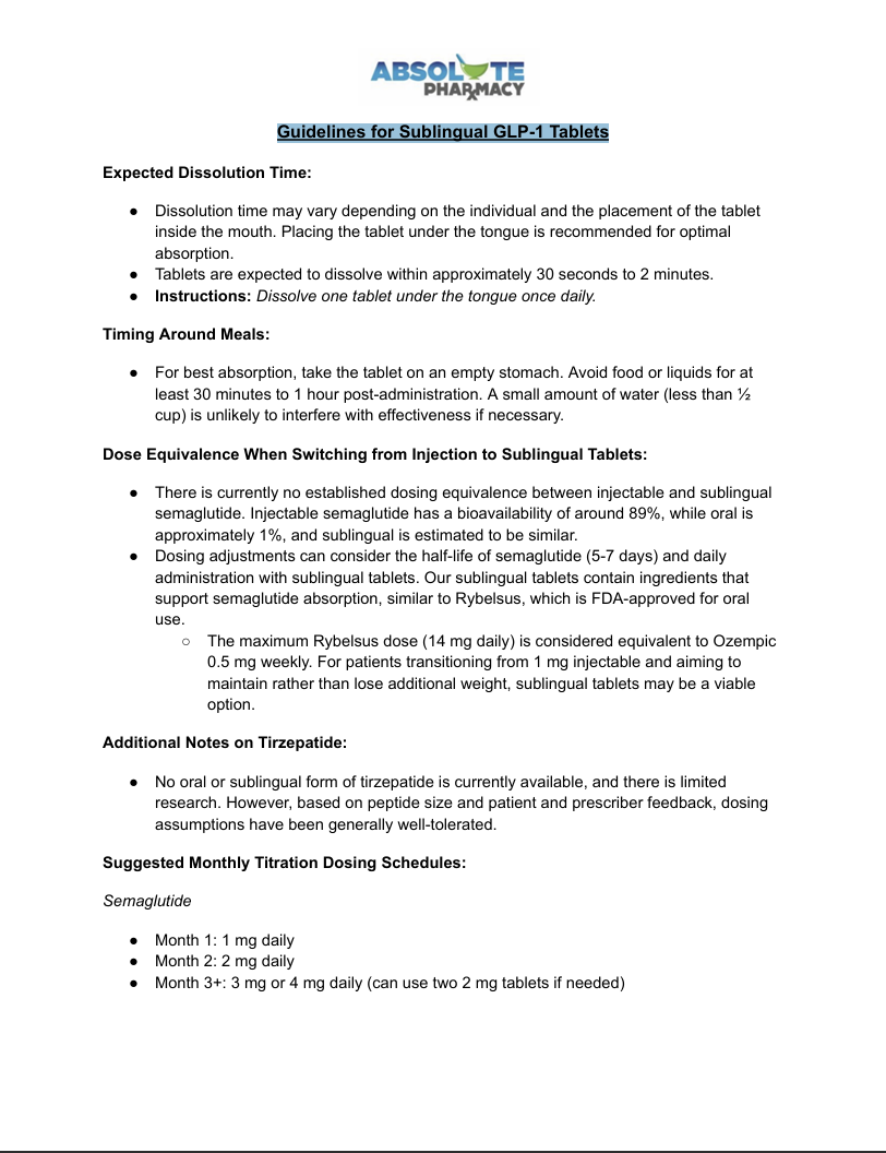 ● For patients switching between GLP-1 medications in sublingual tablet form, a titration or