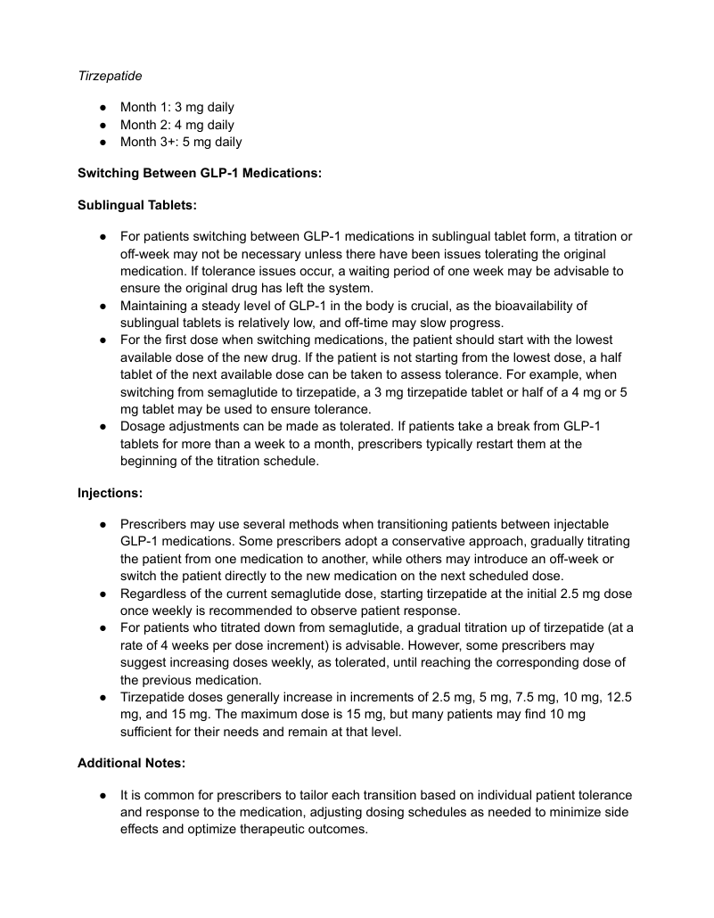 ● Regardless of the current semaglutide dose, starting tirzepatide at the initial 2.5 mg dose
