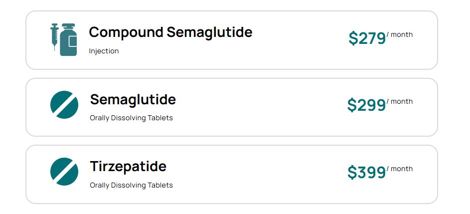 Our medical weight loss treatments are available at these monthly prices: